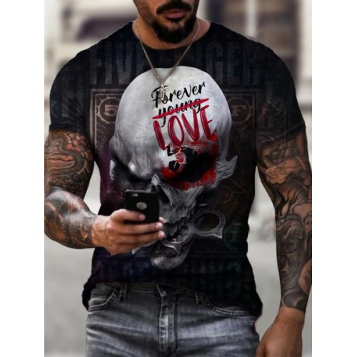 Casual 3D printed skull round neck T-shirt HF0905-02-04